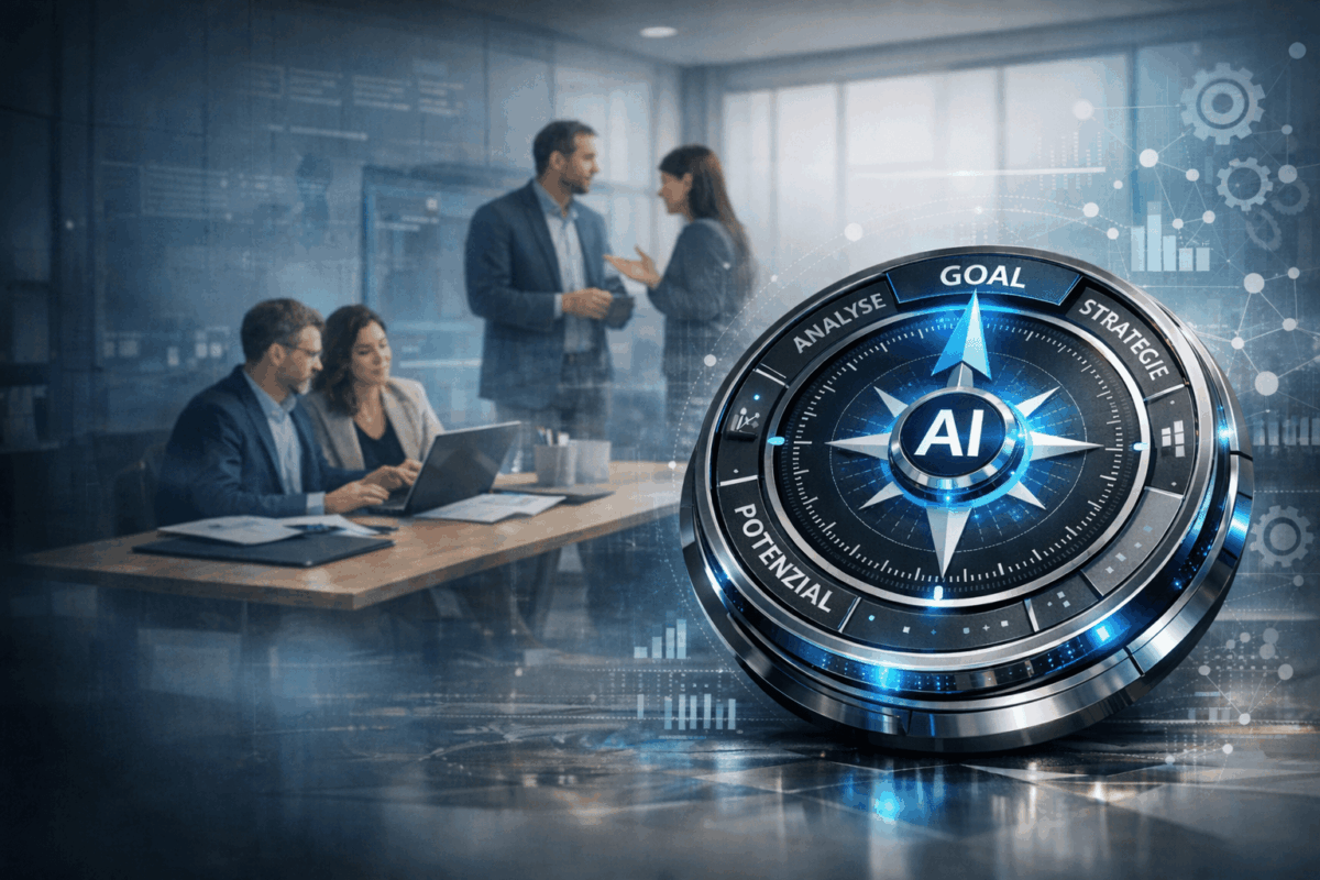Der AI Compass ist der strukturierte Einstieg für Unternehmen in den wirtschaftlichen, kontrollieren und zielgerichteten Einsatz von künstlicher Intelligenz.
