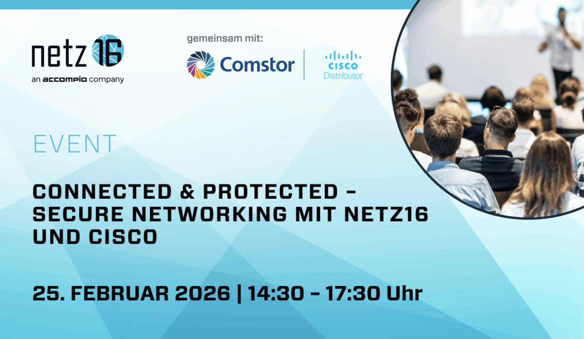 Die Zukunft moderner IT-Infrastrukturen kennenlernen Die Anforderungen an sichere Netzwerke wachsen – NIS2, TISAX oder ISO 27001 sind nur einige Beispiele. Es gilt leistungsfähige, leicht administrierbare und zugleich zukunftssichere Infrastrukturen aufzubauen. Mit unserem Event Connected & Protected zeigen wir Ihnen, wie wir zusammen mit Cisco Secure Networking Lösungen Antworten liefern.