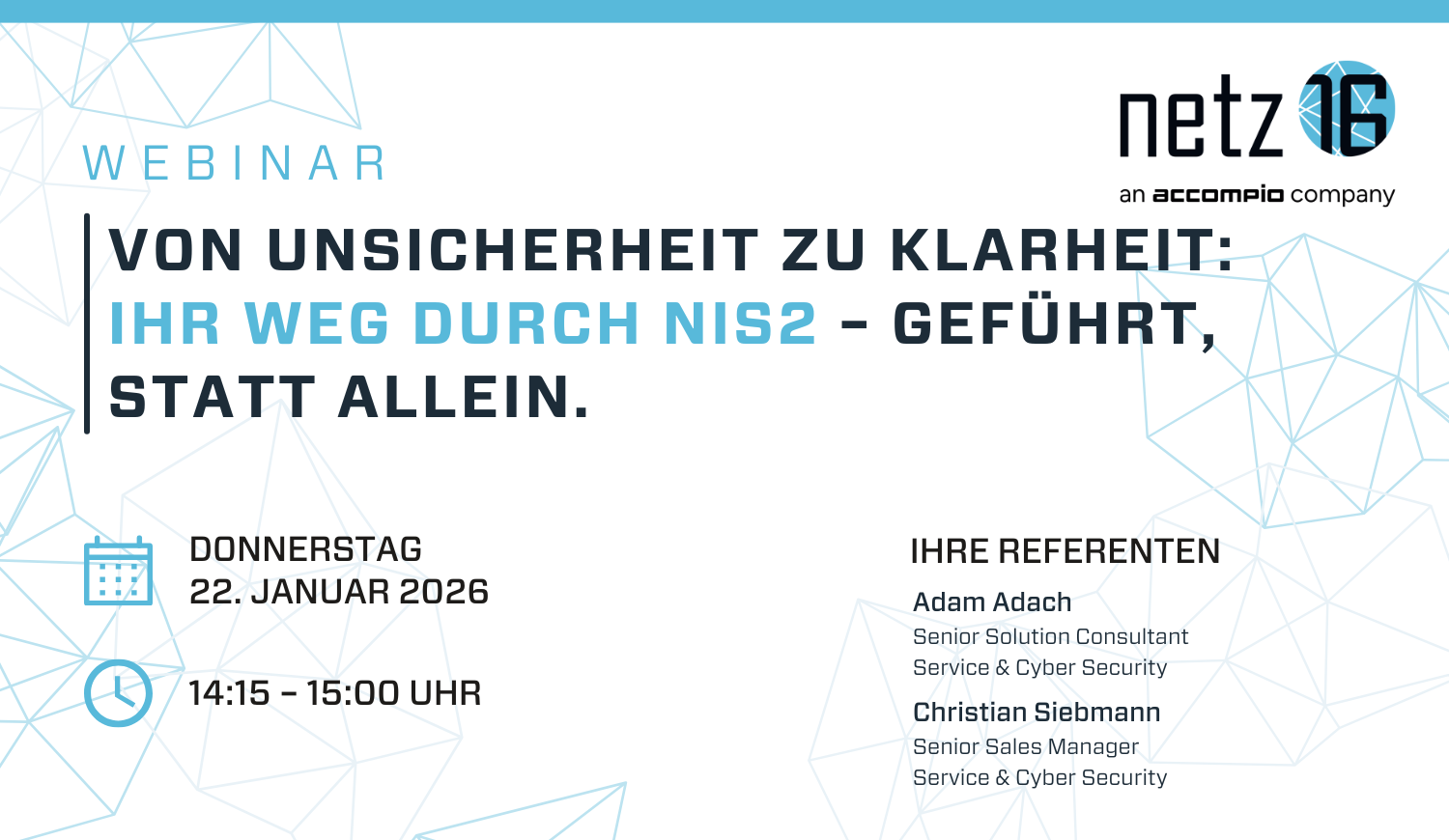 Ob Sie bereits erste Maßnahmen planen oder noch ganz am Anfang stehen: Dieses Webinar zeigt Ihnen einen strukturierten Weg durch NIS2 und bietet Orientierung in einer komplexen Regulierung.